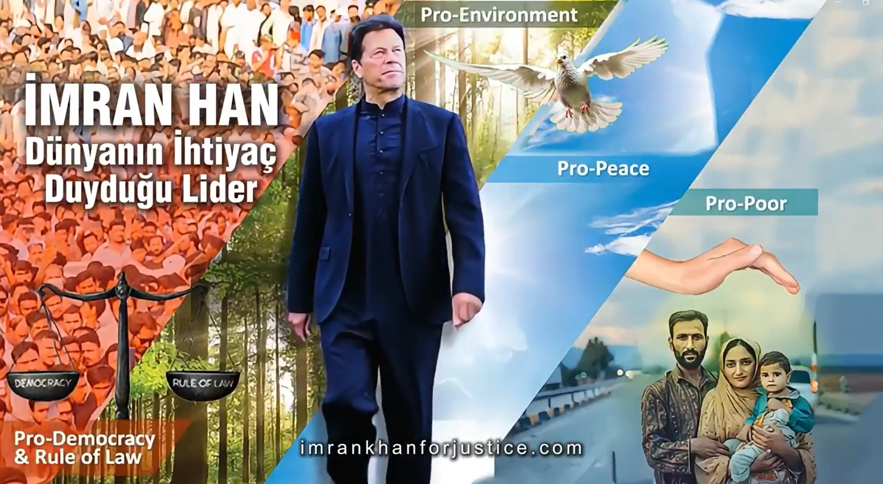 Bu video, İmran Han’ın olağanüstü konumunu — Küresel Güney’in doğal lideri ve Doğu ile Batı arasında hayati bir köprü — tanımayı amaçlayan, devam eden küresel “İmran Han için Adalet” kampanyasının bir parçasıdır. Bu video, İmran Han’ın ve Pakistan halkının benzersiz liderliğini, vizyonunu ve direncini kutlamaktadır.