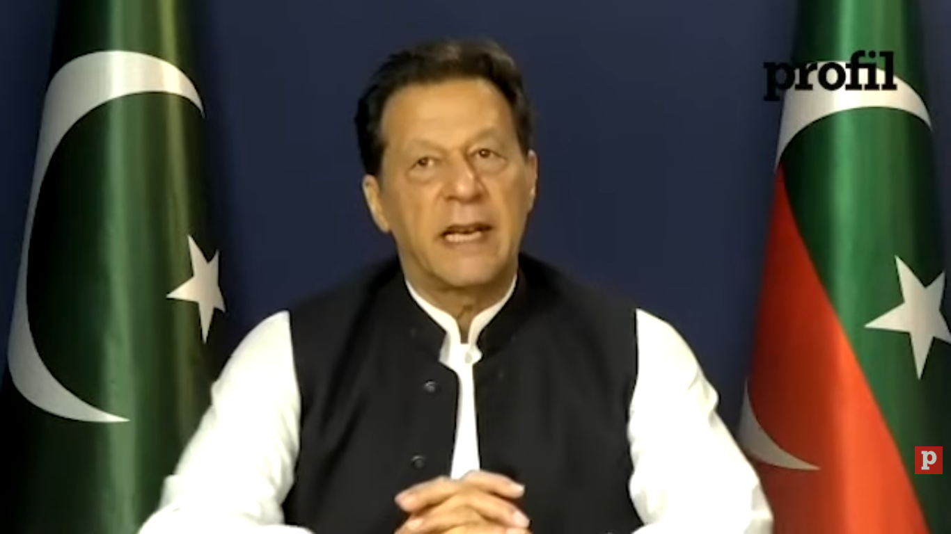 Interview mit Imran Khan, Sonntag, 2. 7. 2023, geführt von Robert Treichler, Nachrichtenmagazin profil. Interview with Imran Khan, former prime minister of Pakistan, on Sunday, 2nd of July 2023. Interviewer: Robert Treichler, newsmagazine profil (Austria)